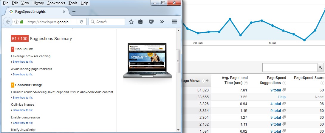 - next to the pages listed, there is a ‘Page Speed Suggestions’ column for each page